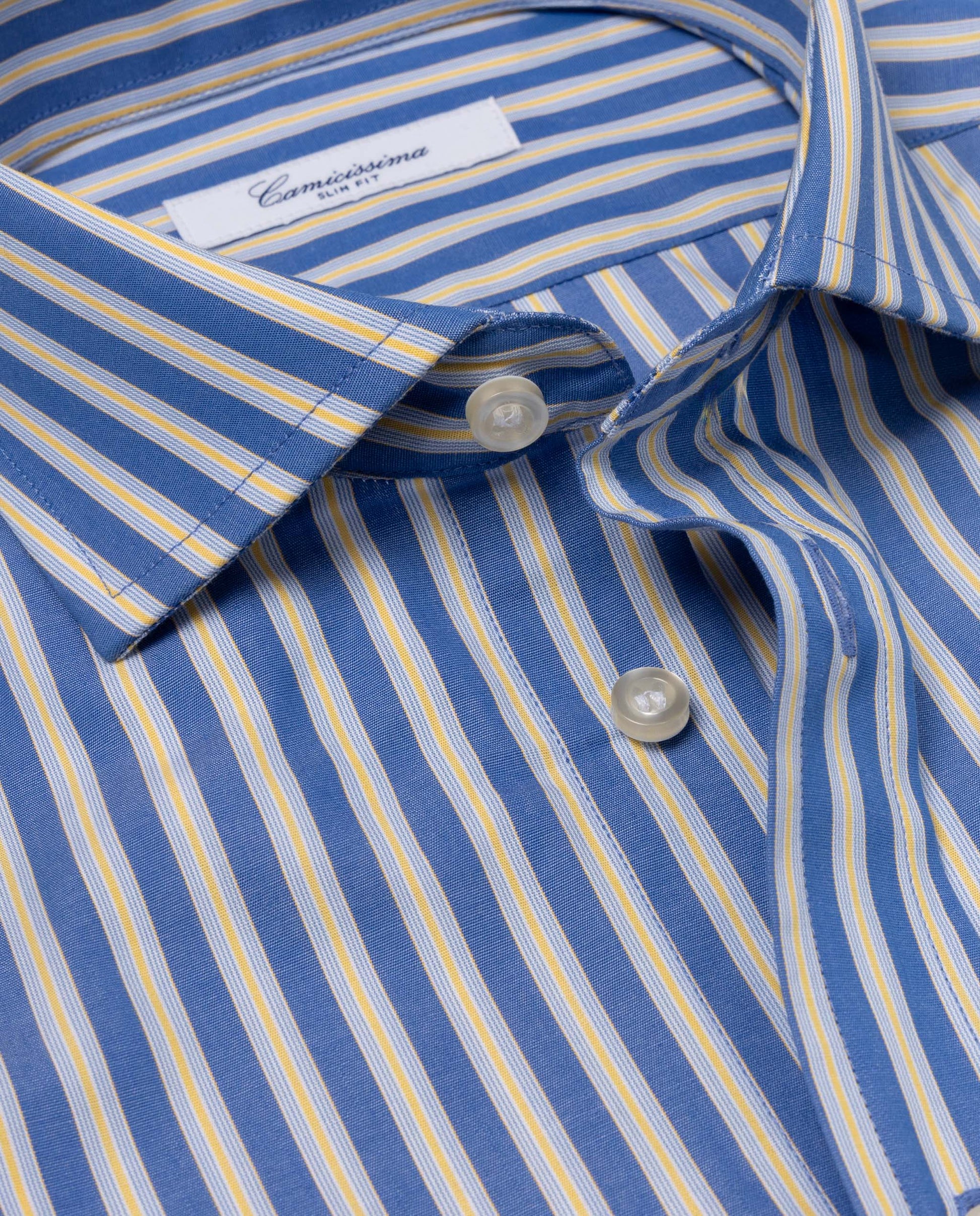 Elegantna i savremena, ova muška košulja na pruge brenda Camicissima izrađena je od 100% čistog pamuka, što pruža maksimalnu udobnost i prozračnost tokom celog dana. Slim fit kroj naglašava siluetu, dok francuska kragna dodaje sofisticiran i moderan izgled – savršen kako za poslovne prilike, tako i za ležernije varijante.