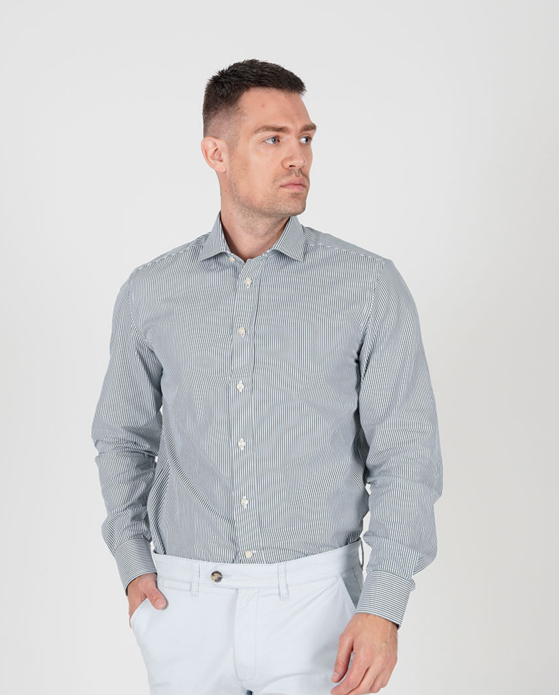 Košulja na pruge, Izrađena od 100% poplin pamuka. Udobna, savršena za poslovne i casual prilike. Pranje Perite na maksimalnoj temperaturi od 40°. Ne belite. Ne sušite u mašini za sušenje veša. Hemijsko čišćenje. Peglajte na srednjoj temperaturi.