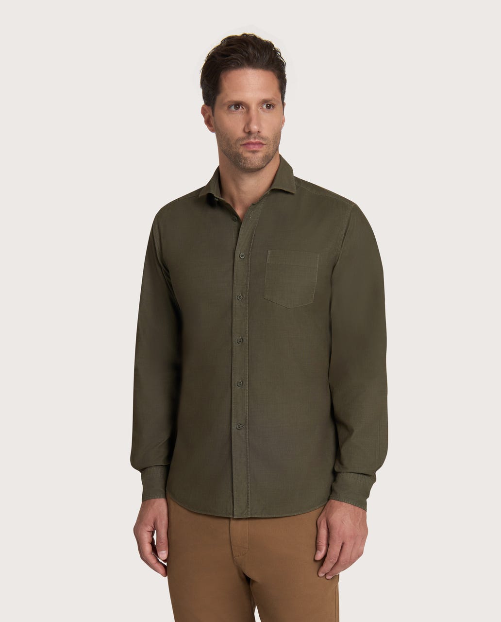 Muška Unique košulja dugih rukava u zelenoj boji, izrađena od 100% pamuka, odiše modernom elegancijom i izraženim karakterom. Napravljena od mekog somota i obojena tehnikom garment dyed (tinto in capo), košulja dobija autentičan izgled i prijatan osećaj na dodir. Kroj Slim Comfort pruža moderan, blago strukiran izgled uz dodatnu udobnost, dok francuski (New French) okovratnik doprinosi sofisticiranom izgledu. Savršena je za rafinirane casual kombinacije, ali se lako uklapa i u složenije, stilizovane outfite, zadržavajući prepoznatljiv i originalan stil. Detalji proizvoda: • Šifra artikla (SKU): CCVLLMABG029028MILITARY • Boja: Maslinasto zelena • Materijal: 100% pamuk • Tkanina: Somot, garment dyed • Okovratnik: Francuski • Dezen: Jednobojni • Kroj: Slim Comfort